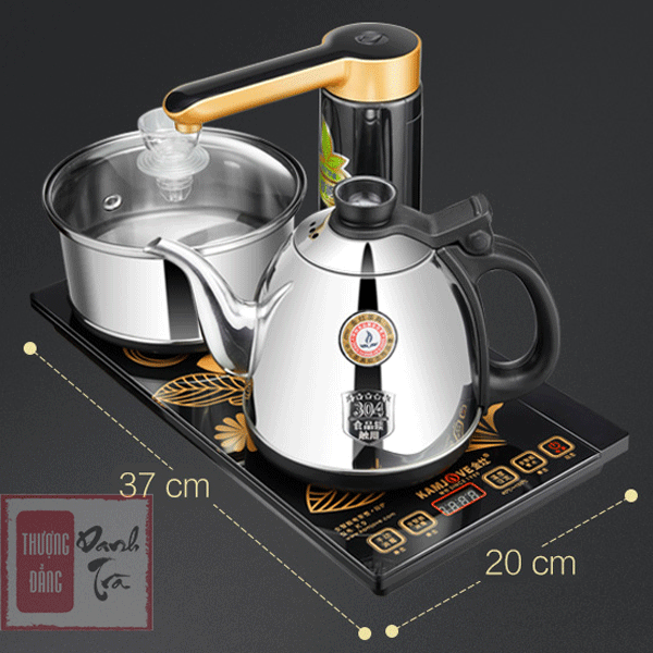 – Tên sp: Bộ pha trà bằng điện tự động Kamjove K9 – Công nghệ: Tự động xoay vòi, tự động bơm nước, tự động ngắt nước, ngắt điện, đun siêu nhanh, tiết kiệm điện năng – Chất liệu: Mặt kính cường lực – Kích thước: 37 * 20 cm (lắp vừa các khung gỗ) – Điện áp: 220V – Xuất xứ: Nhập khẩu chính hãng Kamjove Phụ kiện đi kèm: Ống dẫn nước xả, ống hút cấp nước cho máy bơm, ấm đun nước, nồi luộc chén – Bảo hành: Chính hãng 12 tháng